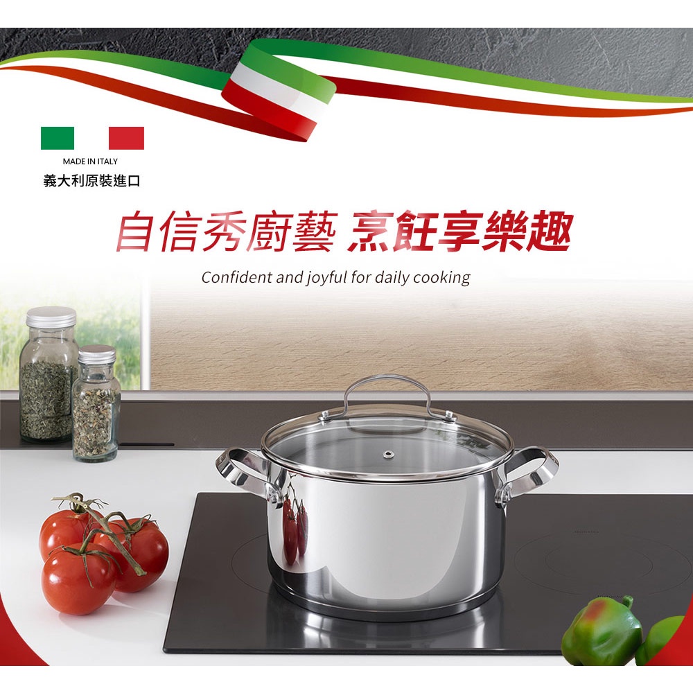 Lagostina樂鍋史蒂娜 ICONA系列18CM不鏽鋼雙耳燉鍋(附玻璃蓋)