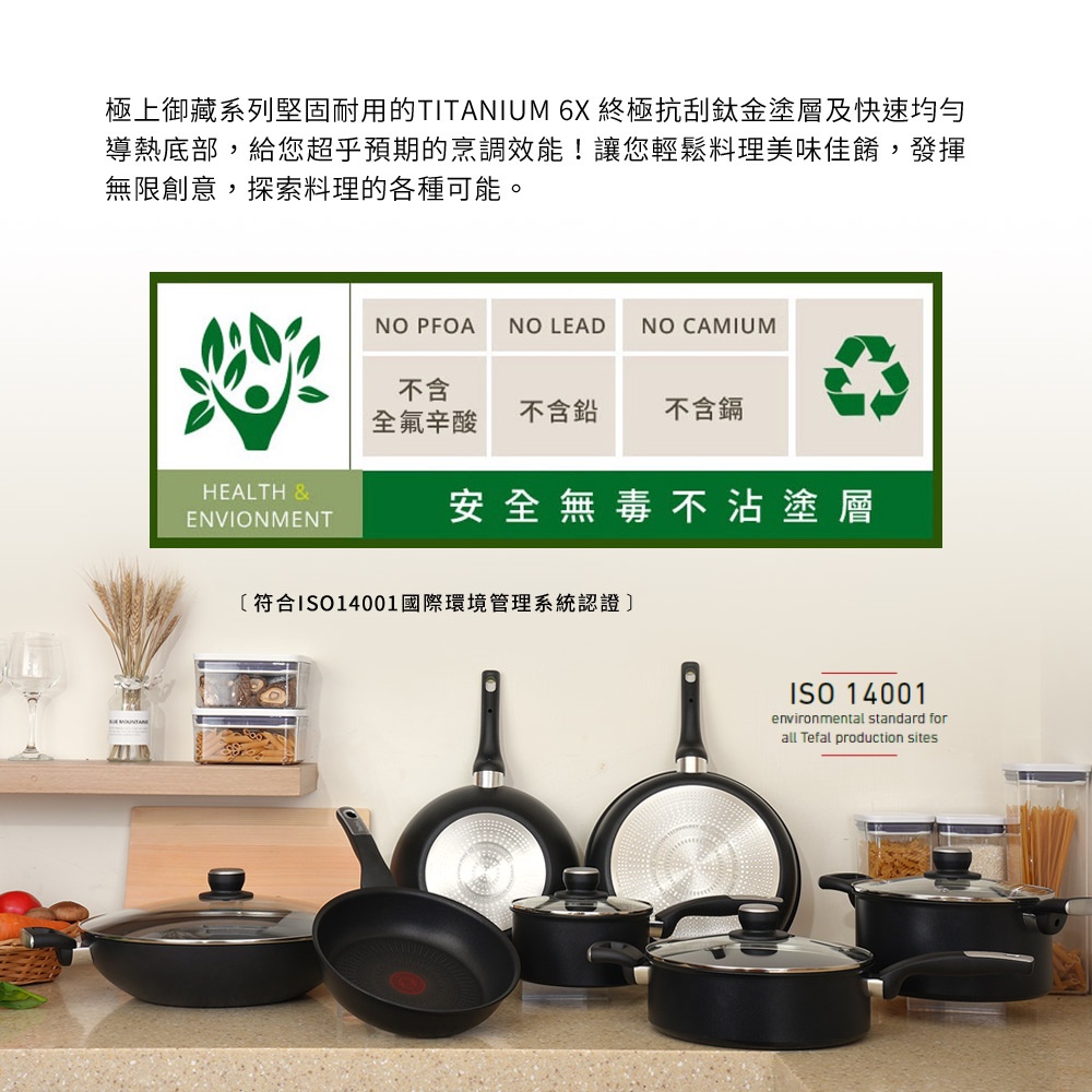 Tefal法國特福 黑白大廚使用-極上御藏系列28CM不沾平底鍋+玻璃蓋(6倍耐用塗層)|法國製|IH爐適用 送鍋鏟