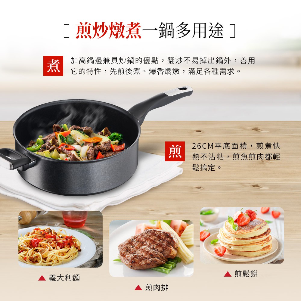 Tefal法國特福 極上御藏系列26CM不沾深煎鍋-加蓋(6倍耐用塗層)|法國製|電磁爐適用
