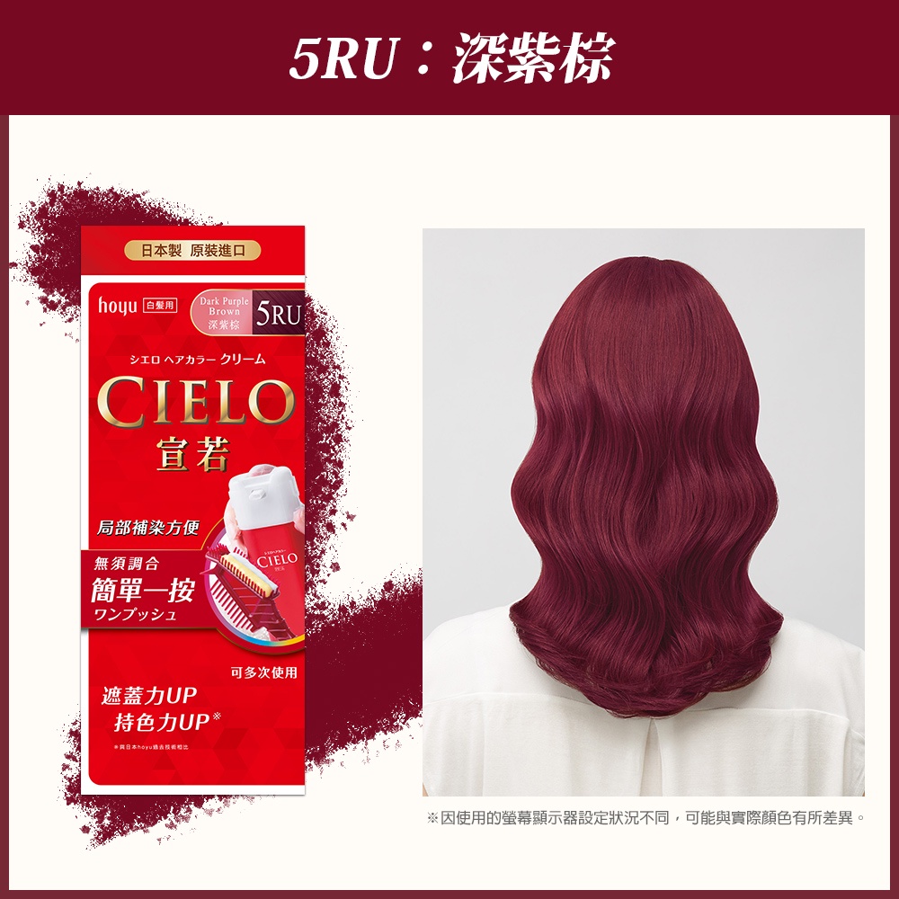 CIELO 宣若 EX染髮霜 5RU 深紫棕|日本製 白髮專用 局部補染方便|hoyu官方旗艦店