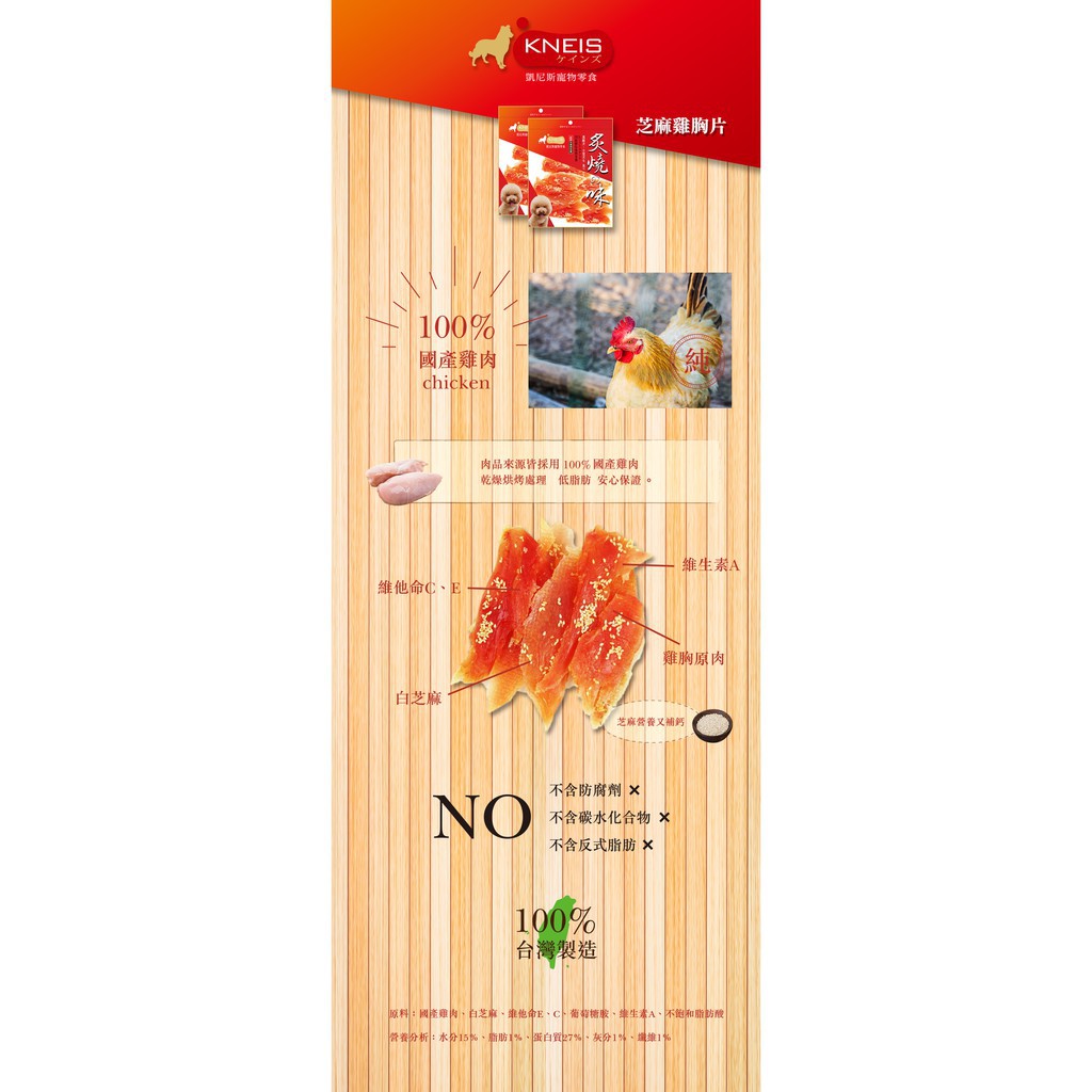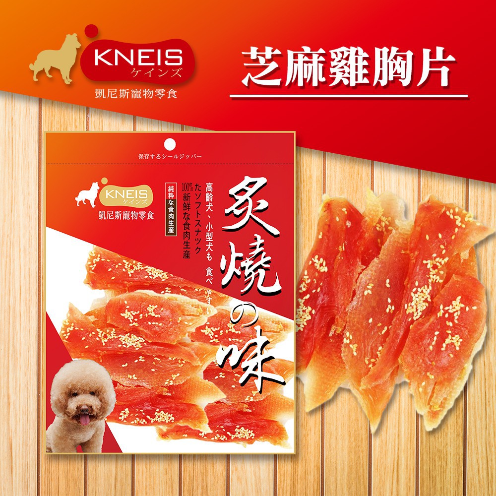 KNEIS 凱尼斯 炙燒の味 芝麻雞胸片 手工零食 低脂 嫩Q 香脆 營養 寵物訓練獎勵