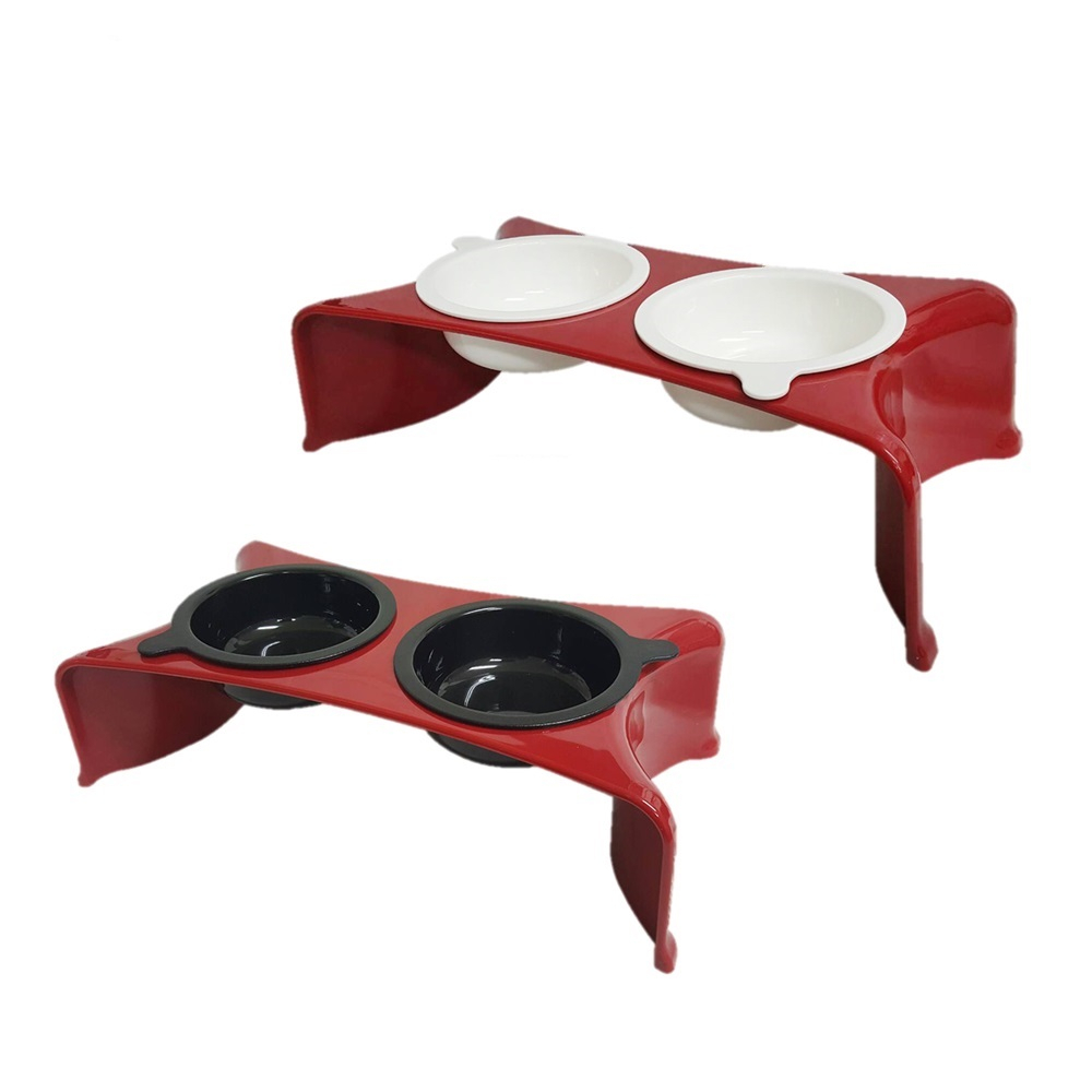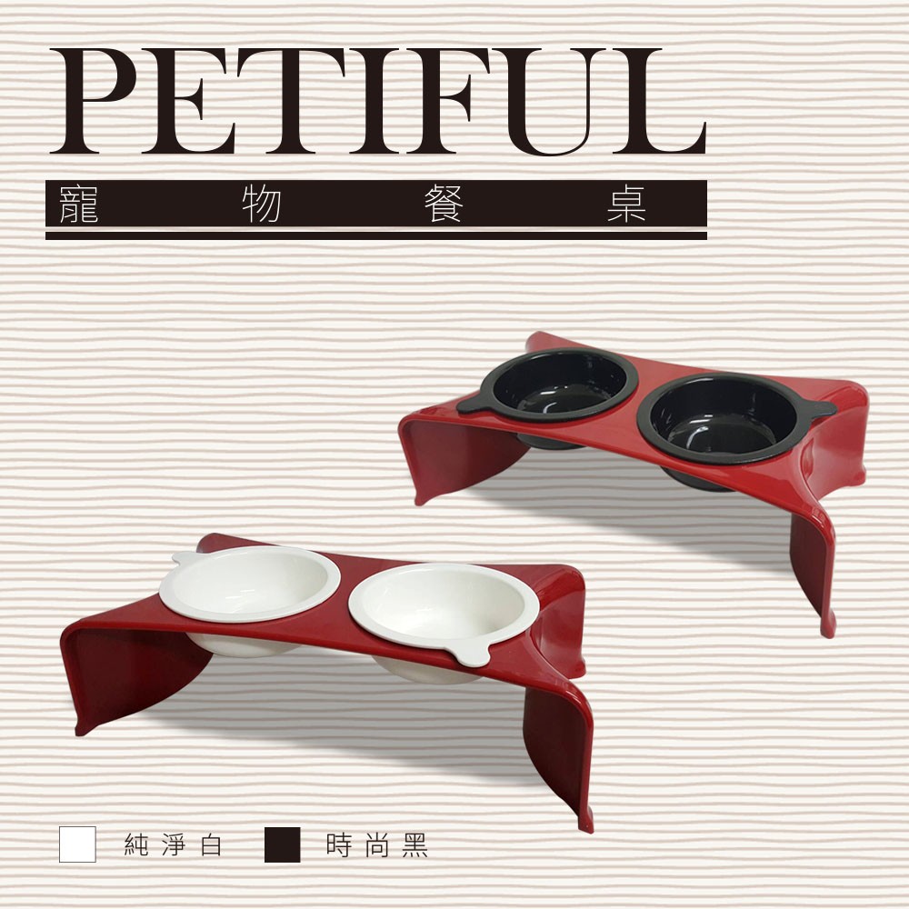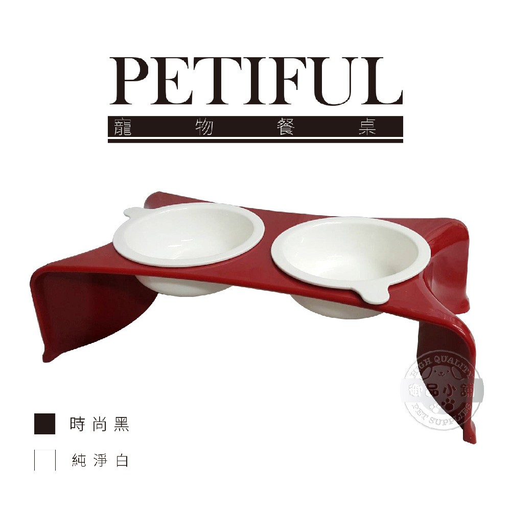 Petiful 寵物雙碗餐桌(黑/白色) 892A 貓狗兔飼料喝水碗架 減輕脊椎負擔關節壓力 可放零食點