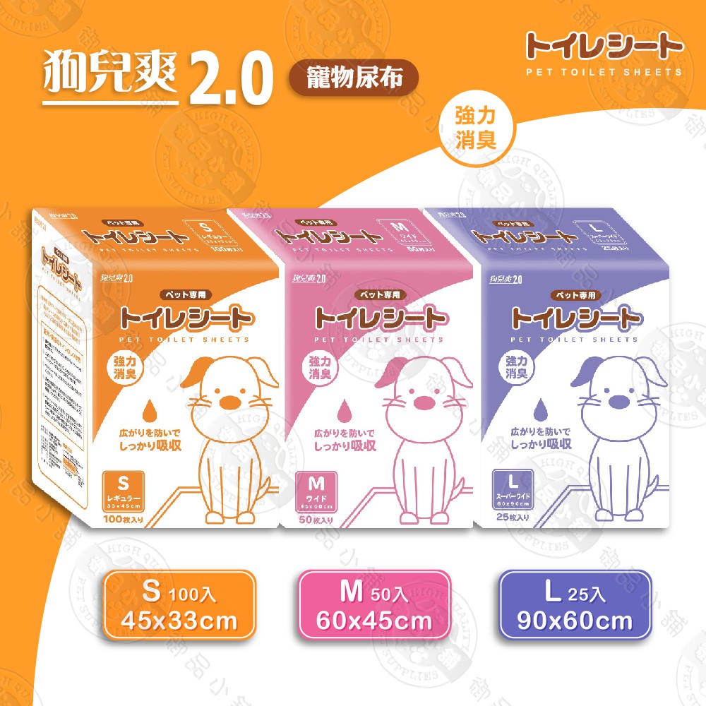 狗兒爽2.0 寵物尿布 x8包組 S100入/M50入/L25入 強力消臭 超瞬吸 不回滲 尿布墊 尿片 狗兒爽
