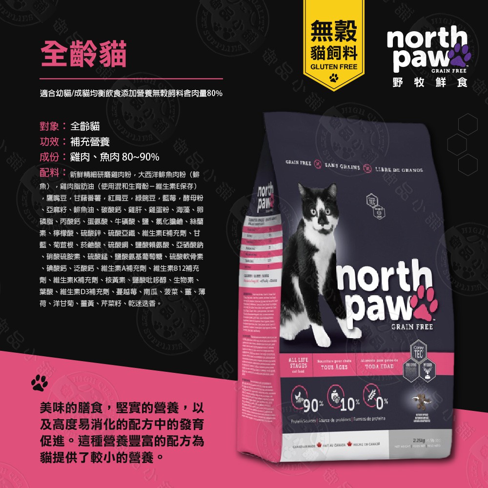 north paw 野牧鮮食 免運中 無穀貓飼料 1/2.25/5.8KG 全齡貓 精細研磨 真空處理 貓糧 貓乾糧