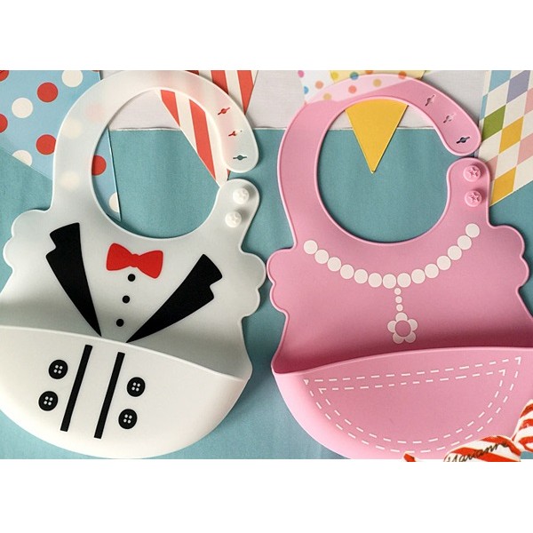 圍兜 吃飯兜 卡通紳士項鍊圖案立體防水寶寶圍兜 吃飯兜