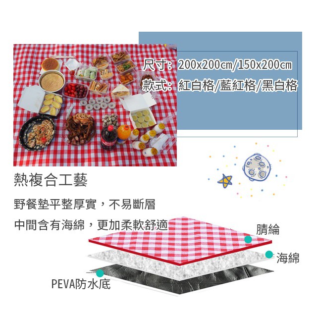 台灣第一 野餐墊 戶外便攜加厚野餐墊 防潮墊 200x200