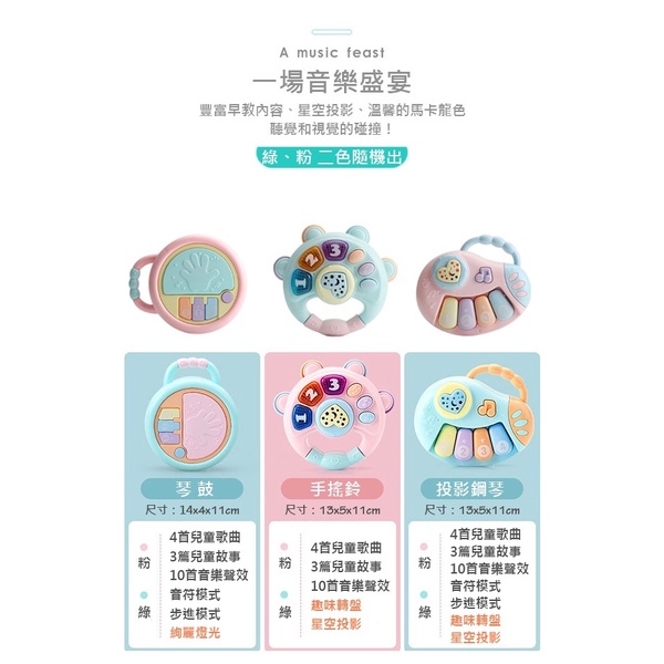 台灣第一 寶寶音樂手拍鼓 多功能投影 拍拍鼓 搖鈴 早教玩具