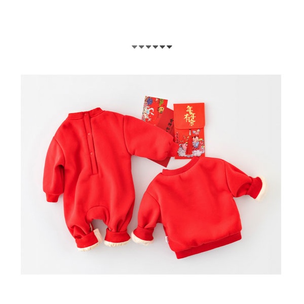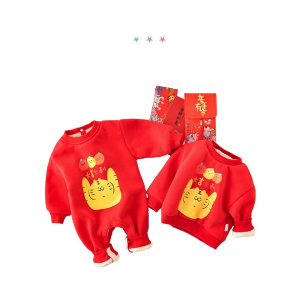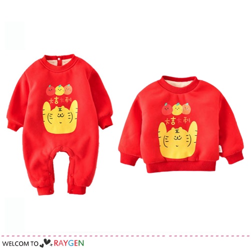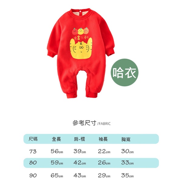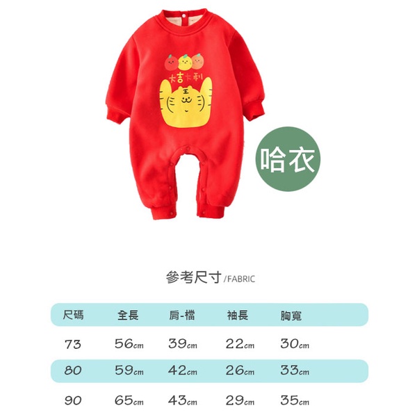 【隔日配】 新年大吉大利虎加絨長袖哈衣/包屁衣 兒童拜年服