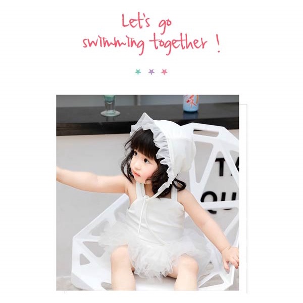 台灣第一 兒童泳衣/女童天使翅膀紗裙連身泳裝 泳衣 泳帽 2件/組