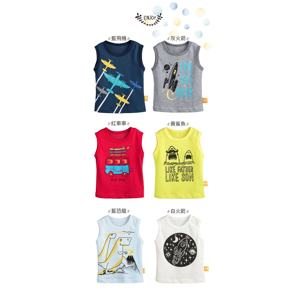 【隔日配】 男童火箭飛機恐龍印花運動背心 圓領無袖上衣 內衣 內撘 汗衫