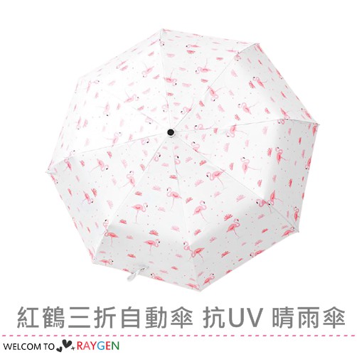 台灣第一 小清新紅鶴三折自動傘 抗UV 晴雨傘
