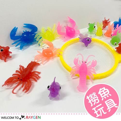 夜市撈魚遊戲 洗澡玩具 浮水玩具 兒童撈魚玩具 浮水魚 軟膠金魚 早期教育認知玩具 螃蟹 龍蝦 海洋動物 立體仿真小