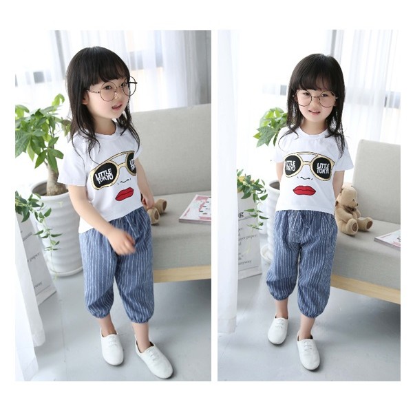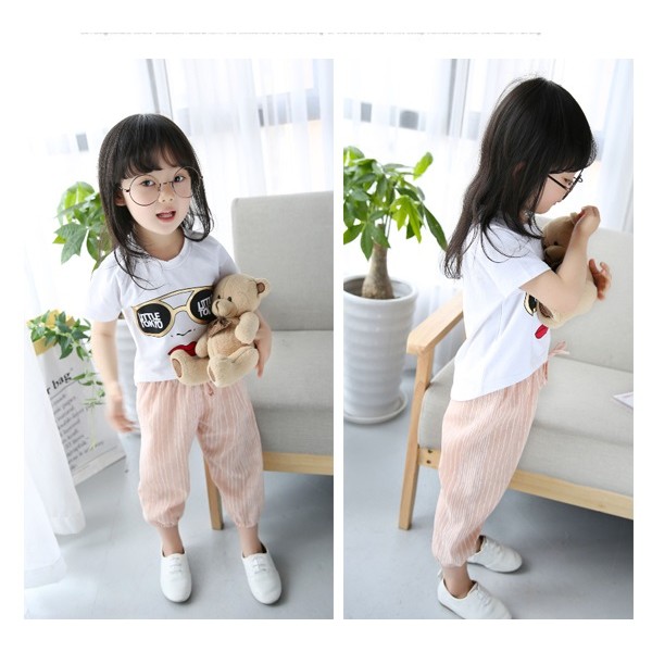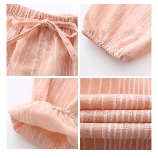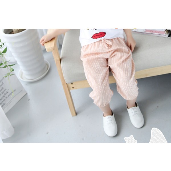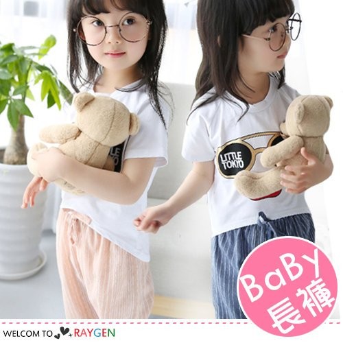 【隔日配】 韓版兒童直條紋棉麻休閒褲 中長褲 綿綢運動褲 休閒褲 哈倫褲 寶寶燈籠褲 空調褲 寬鬆褲 沙灘褲 睡褲