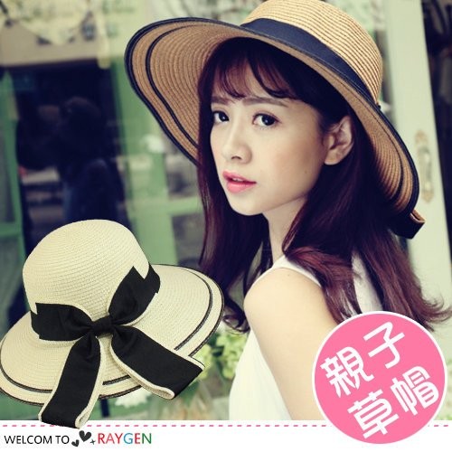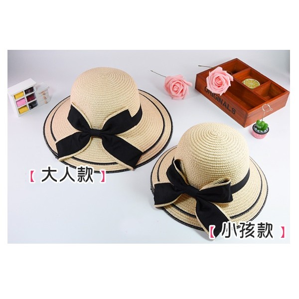 【隔日配】 親子款立體蝴蝶結防曬沙灘大沿草帽 遮陽帽