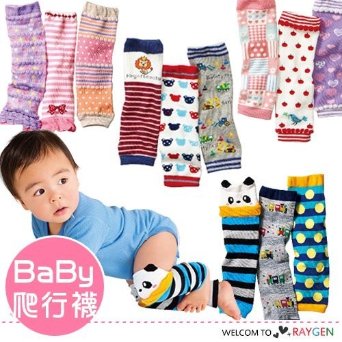 台灣第一 超萌卡通造型寶寶爬行襪 襪套 護膝 3入組