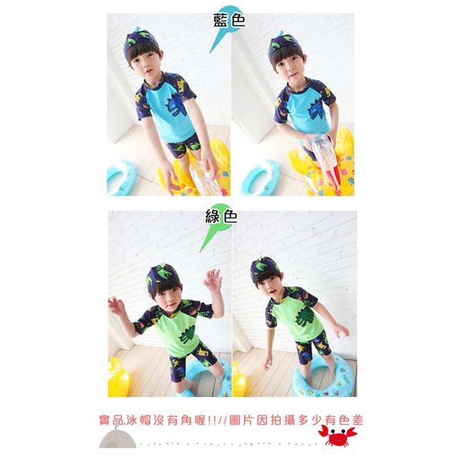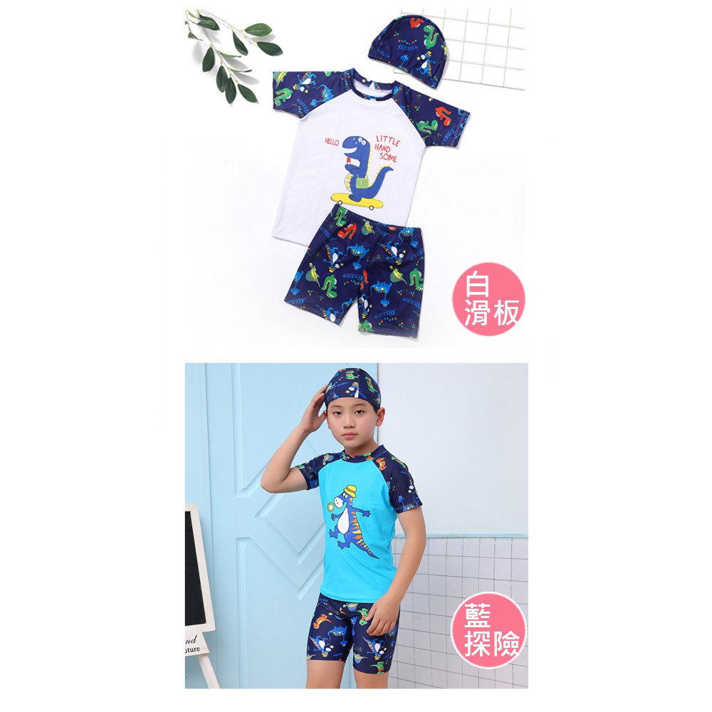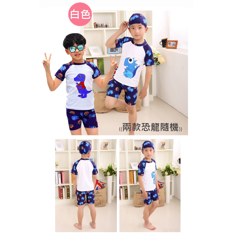 隔日配 發票 恐龍印花三件式兒童泳衣 泳裝 泳帽 泳褲