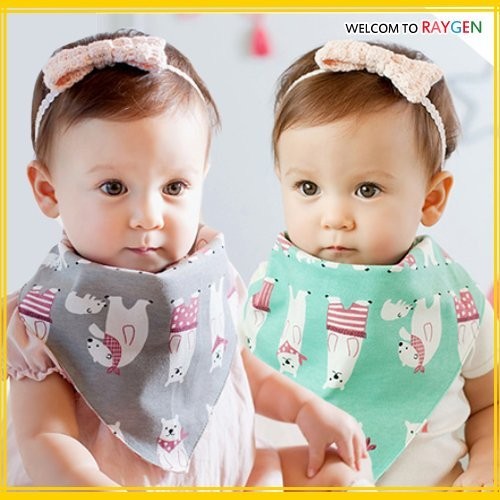 台灣第一 寶寶卡通北極熊純棉雙面口水巾 三角巾【2H064Y179】