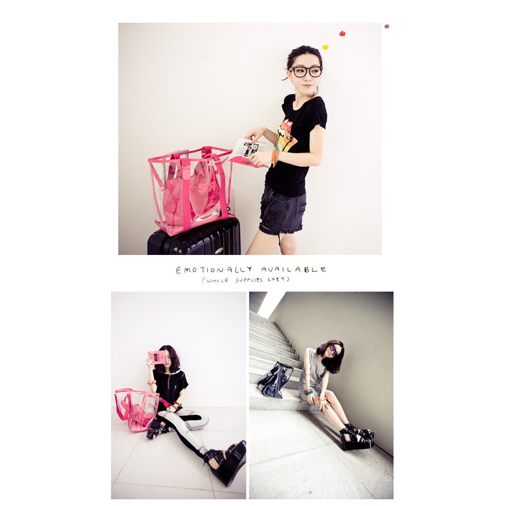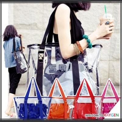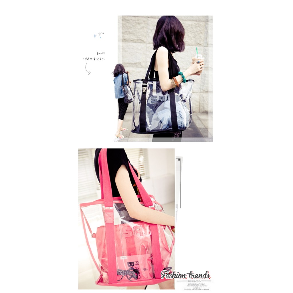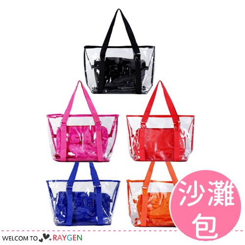 【隔日配】大容量透明防水沙灘包 字母果凍包 水晶包 手提肩背包 泳池海邊度假必備 乾濕分離收納袋 側背包 女包 游泳包