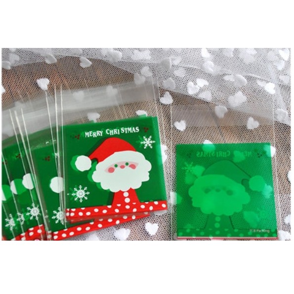 台灣第一 烘焙餅乾X'MAS迷你聖誕節 耶誕節老人綠底自黏袋 100入