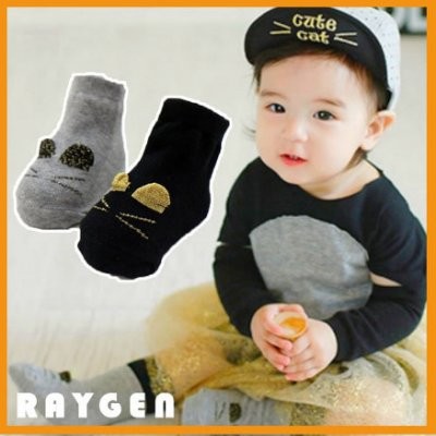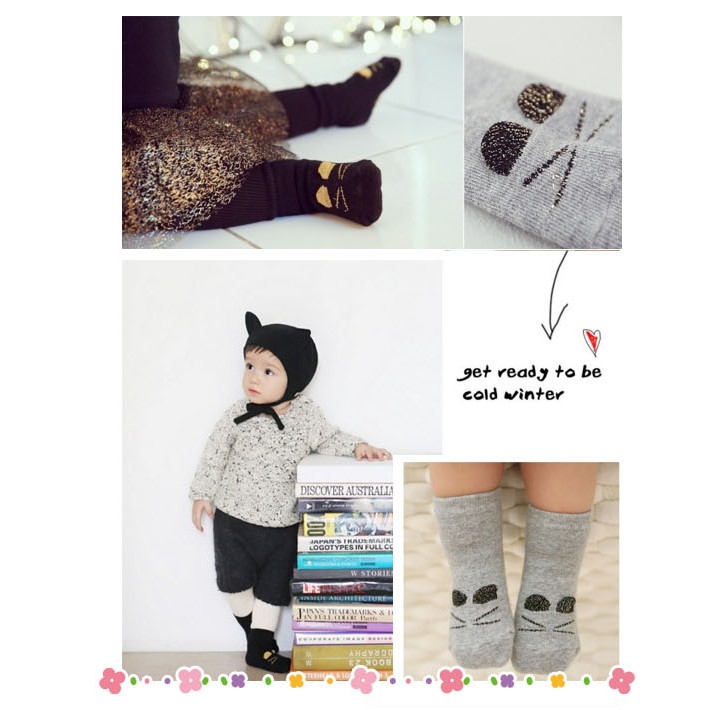 【隔日配】 秋冬季卡通金絲立體貓咪 嬰兒寶寶襪子短襪 膠底防滑 兒童襪嬰兒襪 柔軟純棉 幼兒學步襪 創意禮物 彌月禮