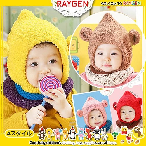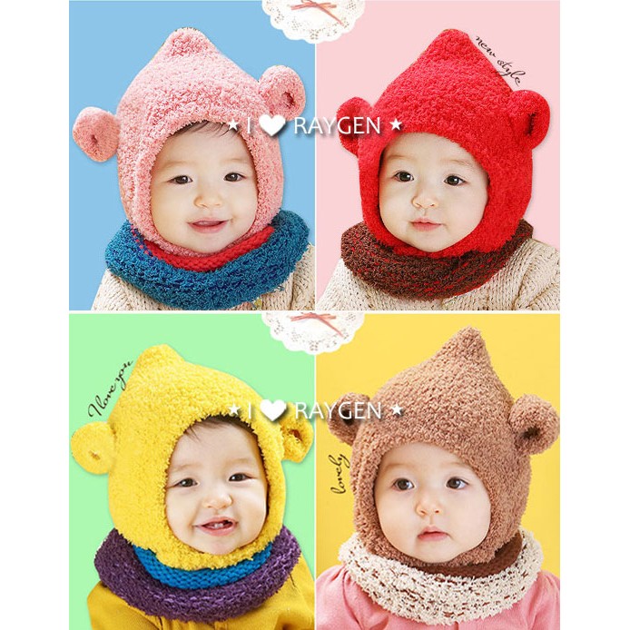 台灣第一 可愛耳朵造型毛絨保暖帽+針織脖圍二件套/嬰兒帽/護耳帽/圍巾