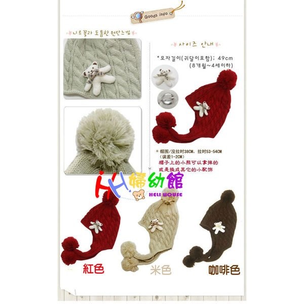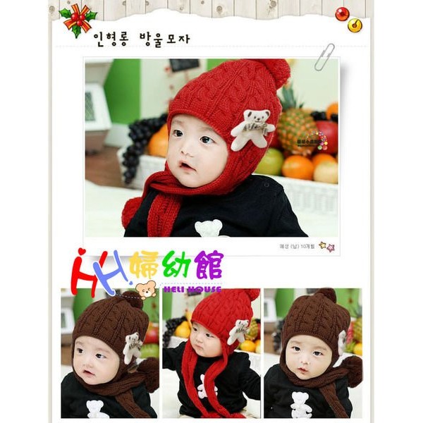 【隔日配】 韓版小熊款護耳帽/童帽.寶寶帽子.毛線冬帽