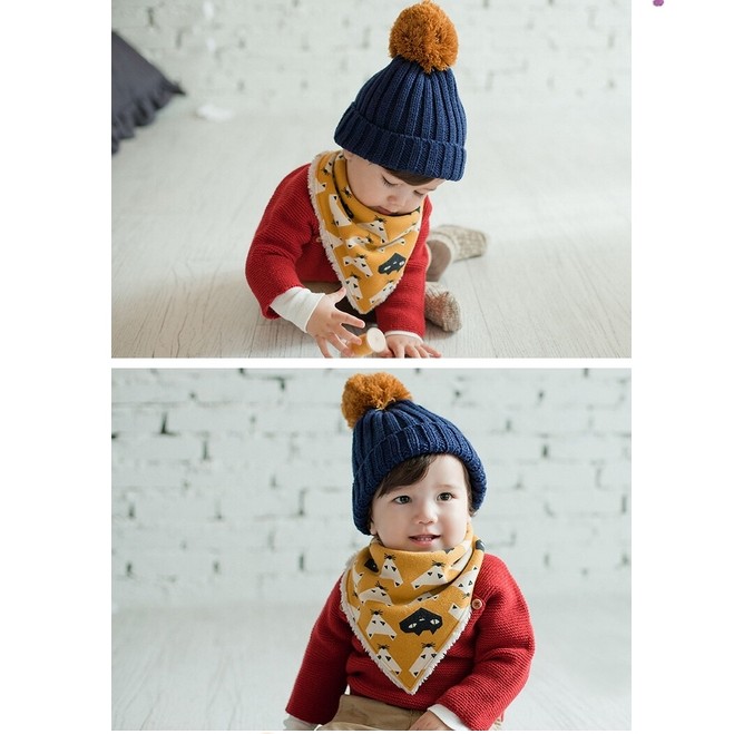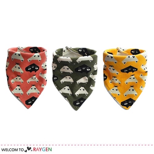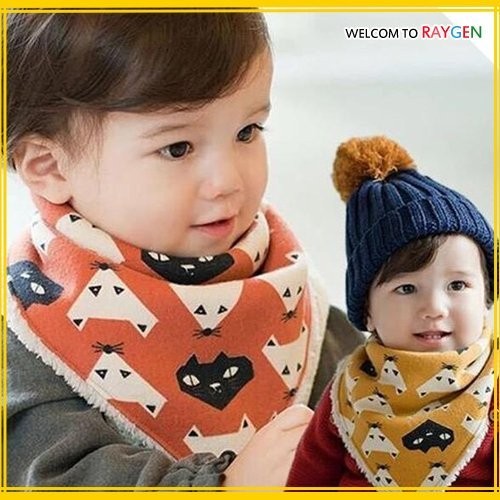 台灣第一 寶寶狐狸印花純棉加絨口水巾 三角巾