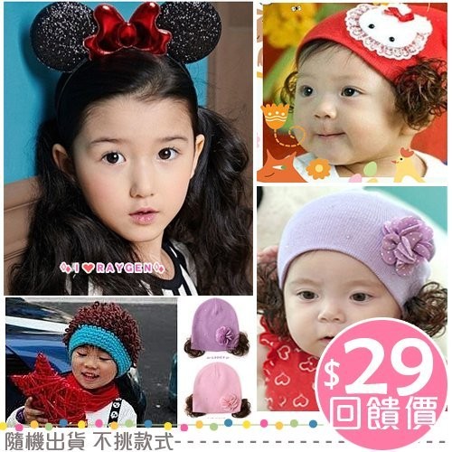 出清 可愛帽 女童帽 手工彩色假髮帽 兔子帽 假髮帽 造型帽 造型亮皮髮箍