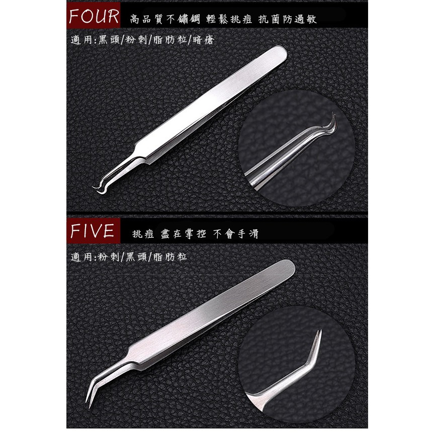台灣第一 雙頭不鏽鋼粉刺夾5件套 挑痘針痘痘針去黑頭 粉刺針套裝