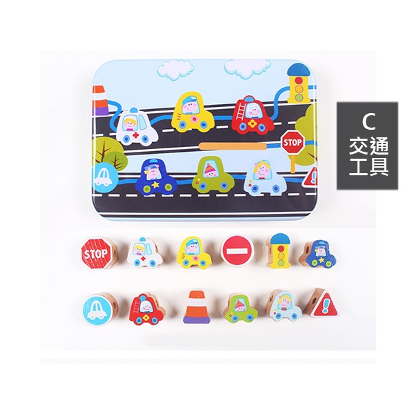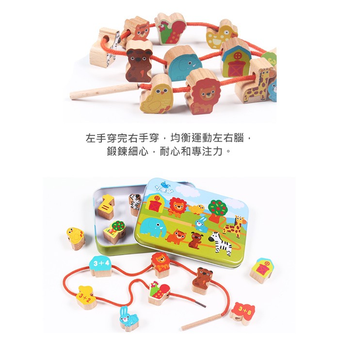 台灣第一 早教趣味木製大顆粒串珠組 益智玩具 鐵盒【2C116M933】