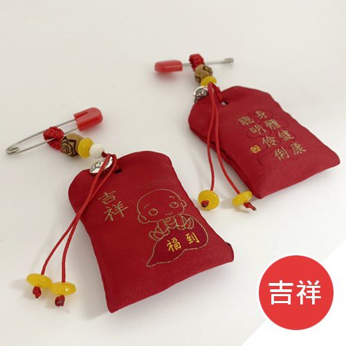 【隔日配】寶寶平安符袋 嬰兒護身符袋 別針式刺繡福袋 隨身祈福掛件 裝香火胎毛袋 避邪保平安 彌月禮物首選