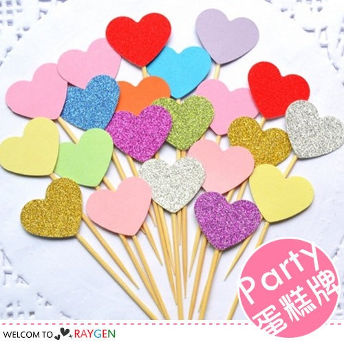 台灣第一 粉色系甜蜜愛心蛋糕插牌10支裝 佈置 裝飾