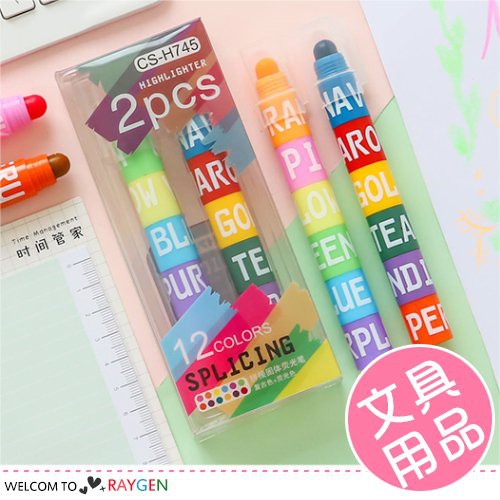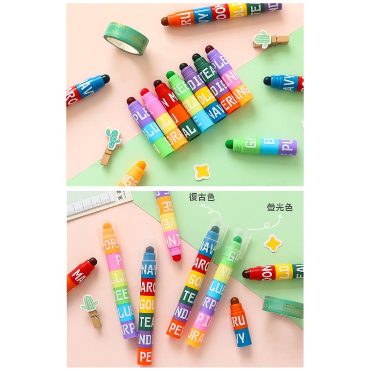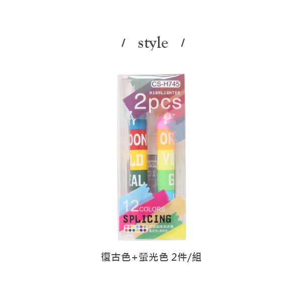 【隔日配】 兒童節 禮物 禮品 螢光筆 彩色筆 12色拼接固體復古色螢光筆 重點彩色筆 標記