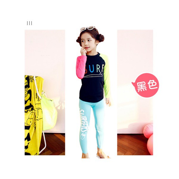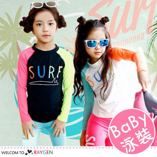 台灣第一 泡溫泉必備 泳裝 泳衣 兒童長袖時尚拼色字母分體式泳裝 泳衣 2件/組