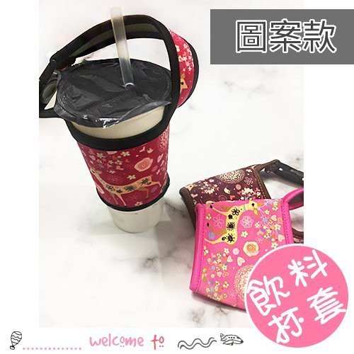 台灣第一 手搖杯防燙便攜杯套 潛水布環保手提袋 圖案款