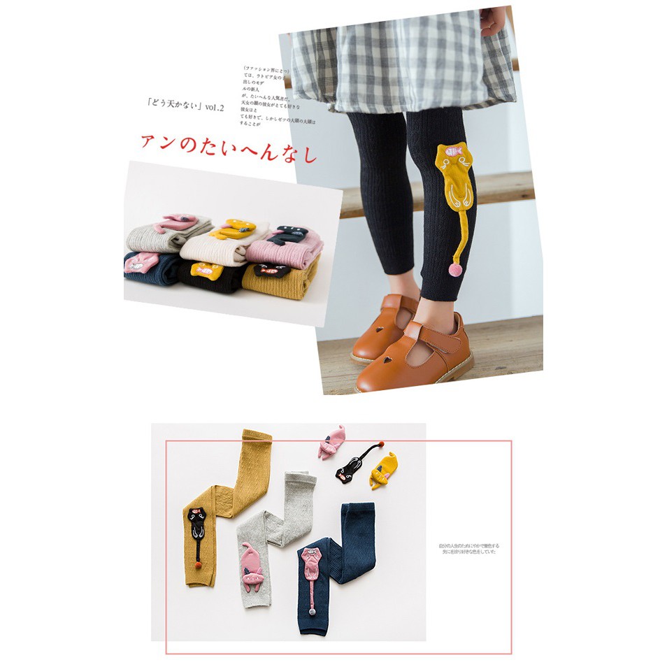 女童褲 兒童褲 內搭褲 女童九分褲 貓咪吃魚造型連身褲襪 九分褲