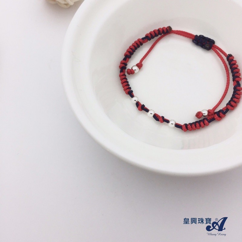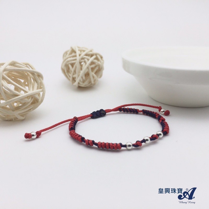 <皇興精品水晶礦石復古首飾>925純銀圓滿平安銀珠綁繩手鍊