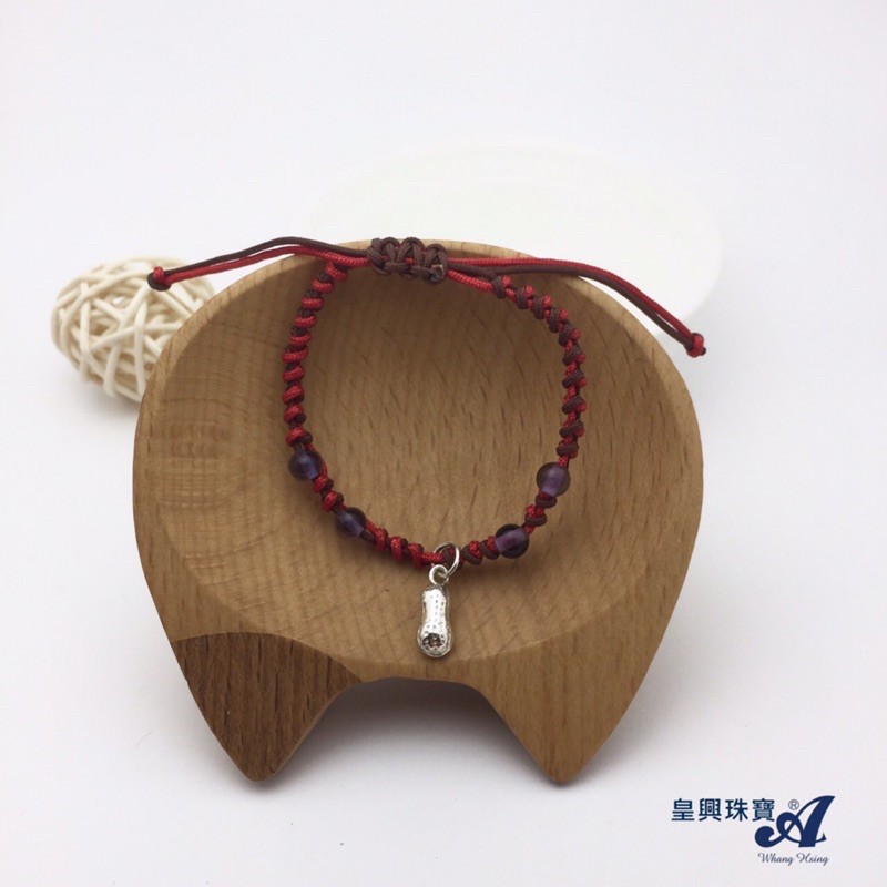 <皇興精品水晶礦石復古首飾>925純銀好事花生紫琉璃珠寶寶編繩手鍊