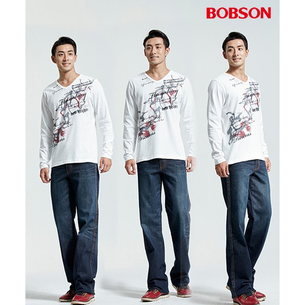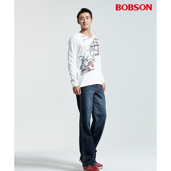 BOBSON 男款貓鬚大直筒牛仔褲1713-52