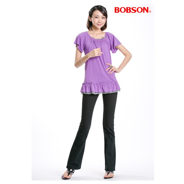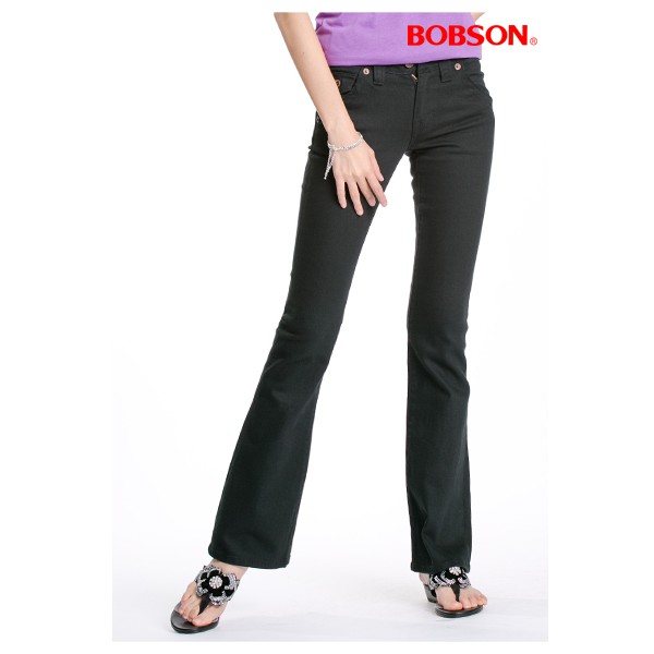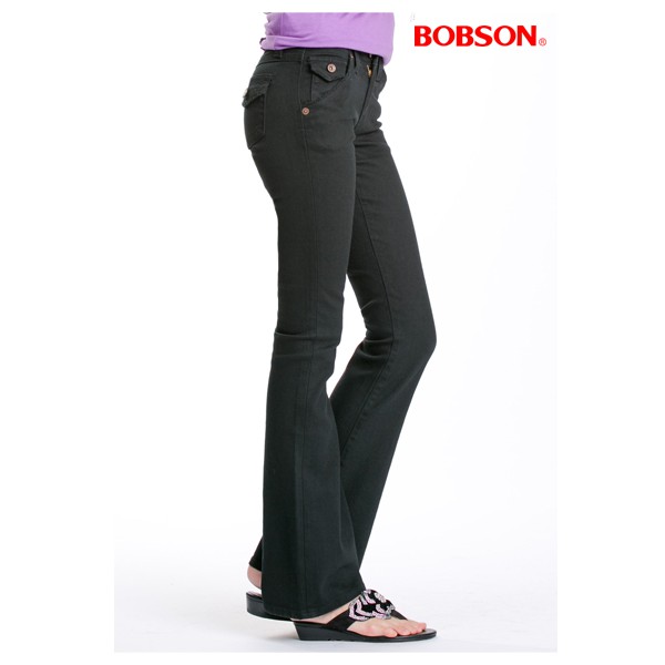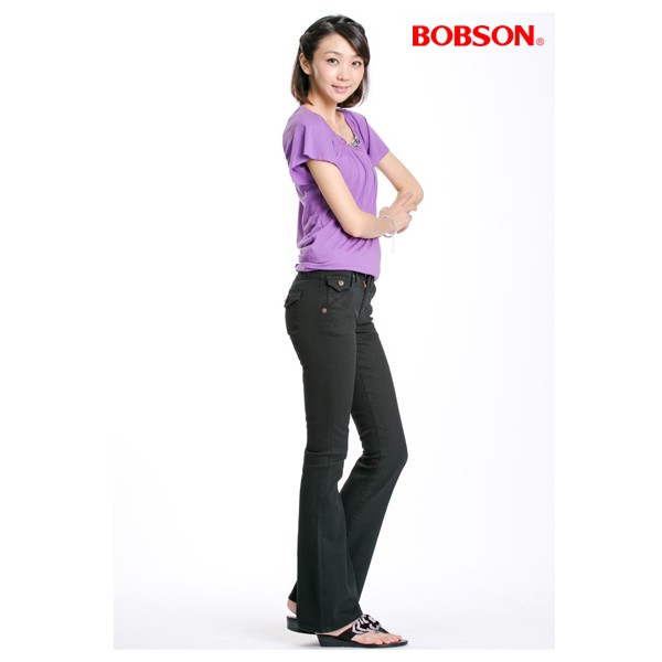 BOBSON 女款磨破貼口袋伸縮喇叭褲9014-88