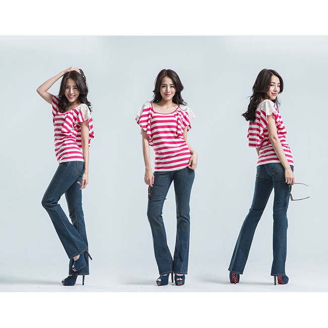 BOBSON 女款低腰伸縮小喇叭褲9045-53