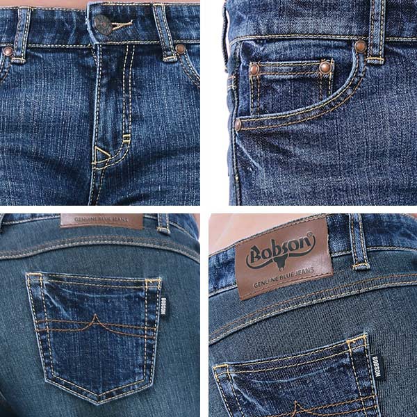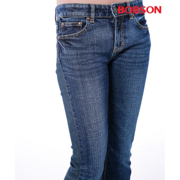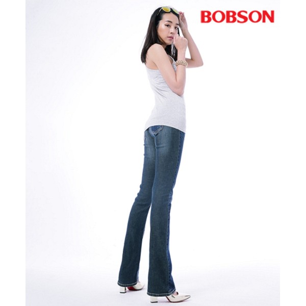 BOBSON 女款低腰異素材小喇叭褲9098-53