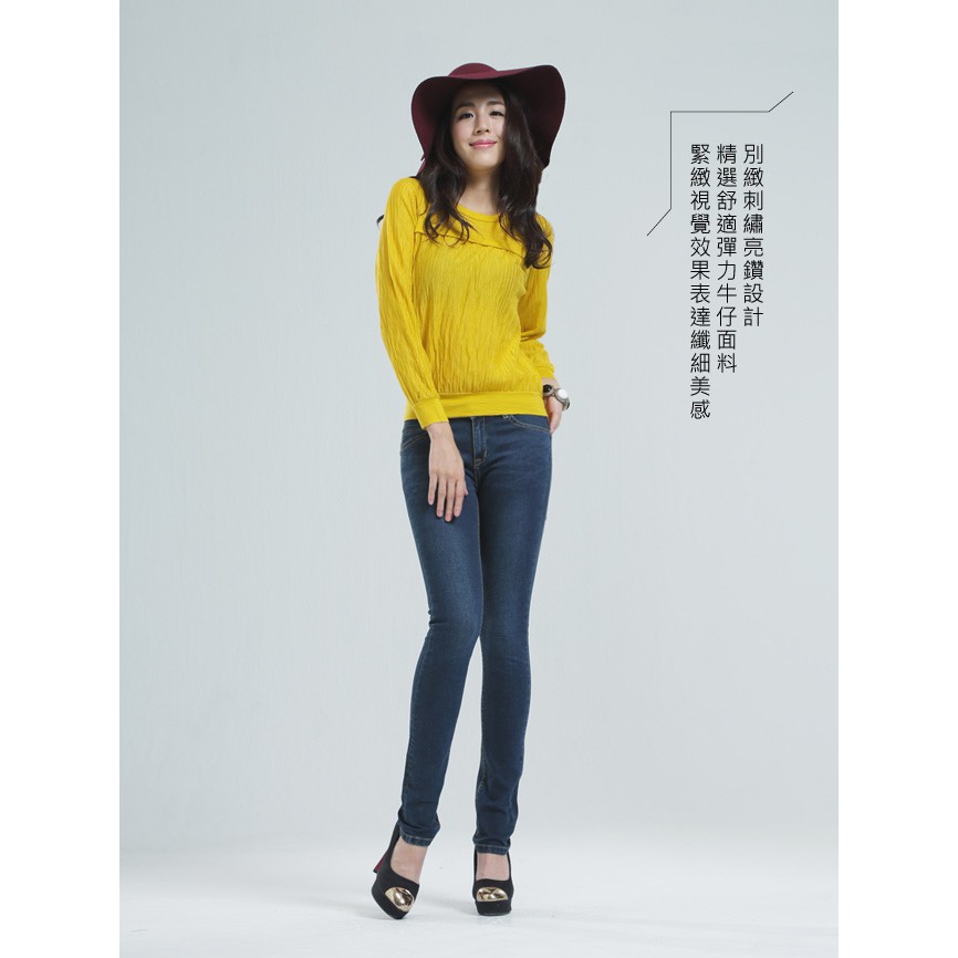 BOBSON 女款亮鑽超彈力小直筒褲8061-53