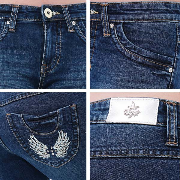 BOBSON 女款後袋刺繡貼飾小直筒褲(8106-53)
