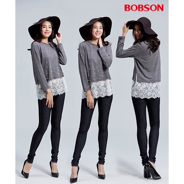 BOBSON 女款珠珠蕾絲寬版上衣 36083-86