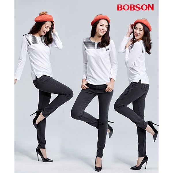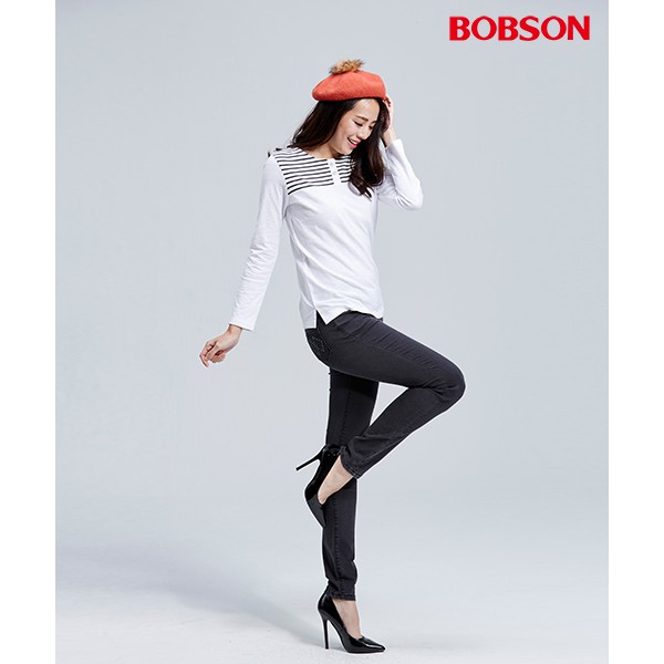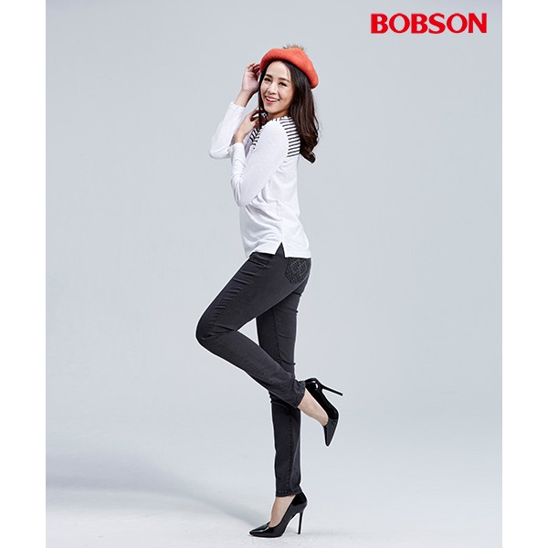BOBSON 女款高腰強彈力小直筒褲(8133-88)