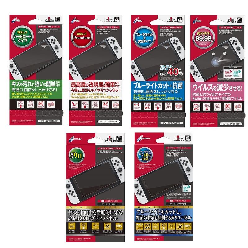switch主機 OLED版 台灣公司貨 附Cyber日本原裝保護貼 3H/9H 抗刮 濾藍光 抗菌 高透【魔力電玩】