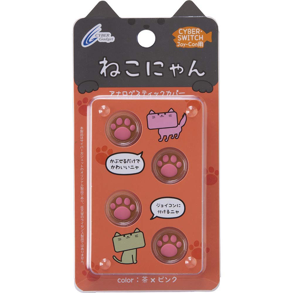 Cyber日本原裝 Switch Joycon 用貓咪肉球 喵爪滑蓋墊 類比套 黑灰OR茶粉紅【魔力電玩】