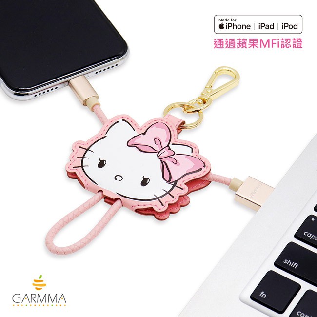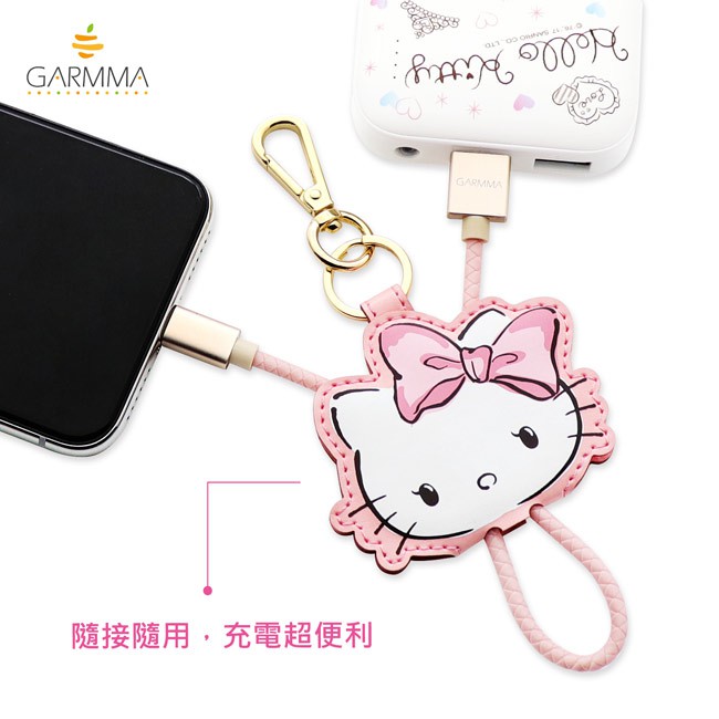 GARMMA 永橙 Hello Kitty Apple Lightning 皮革吊飾傳輸線 甜美款【魔力電玩】