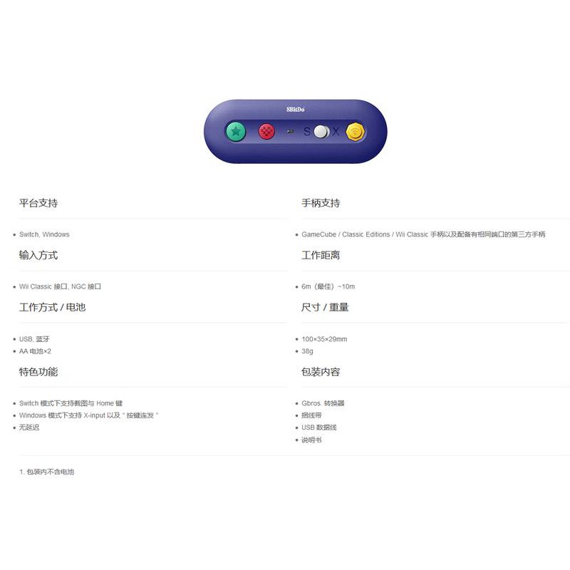 八位堂 Switch周邊電腦GBros 藍芽轉換器 藍芽接收器 NGC/Wii PRO 有線手把 台灣公司貨【魔力電玩】